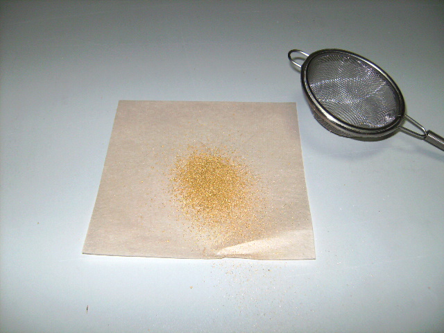 さて、まずは金箔を茶漉しですり潰して細かい金粉にします。