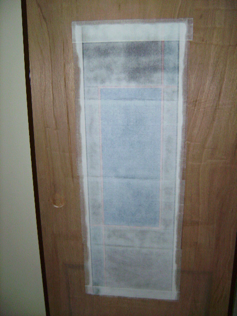 仕方ないので横枠は付けたまま板戸方式で張り、枠に沿って切りました。